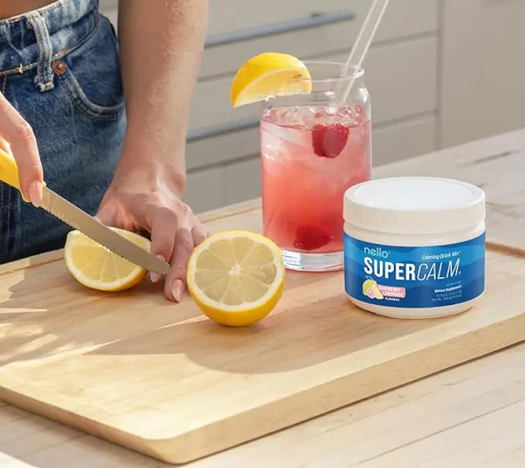 Cuando necesite relajarse o en cualquier momento antes de acostarse. En días estresantes, especialmente si se consume cafeína. Mezcle 5g de Supercalm con 8oz de agua fría.